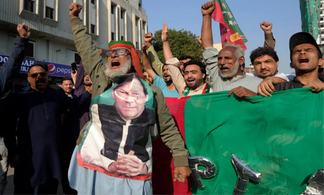 Simpatizantes del ex primer ministro Imran Khan protestando por un presunto fraude en las elecciones generales de 2024. Fuente: Fareed Khan en Associated Press.Pakistán, ubicado en el corazón del sur de Asia, es un país que combina una amplia diversidad cultural y étnica con una historia política compleja. Desde su independencia en 1947, tras la partición del Imperio Británico, ha desempeñado un papel estratégico en la región, enfrentando desafíos tanto internos como externos. Actualmente, es una república parlamentaria federal, y su liderazgo está encabezado por Shehbaz Sharif, elegido primer ministro en 2024. Sin embargo, la política pakistaní ha estado marcada históricamente por la influencia predominante de las fuerzas armadas, que han moldeado no solo el panorama político, sino también el económico, al ejercer un control significativo sobre sectores estratégicos y partidos políticos. Este predominio ha generado tensiones, como la censura de Imran Khan en 2022, que muchos atribuyen a diferencias en la política exterior, particularmente en el cambio de enfoque respecto a China, dejando de lado las relaciones con Estados Unidos.